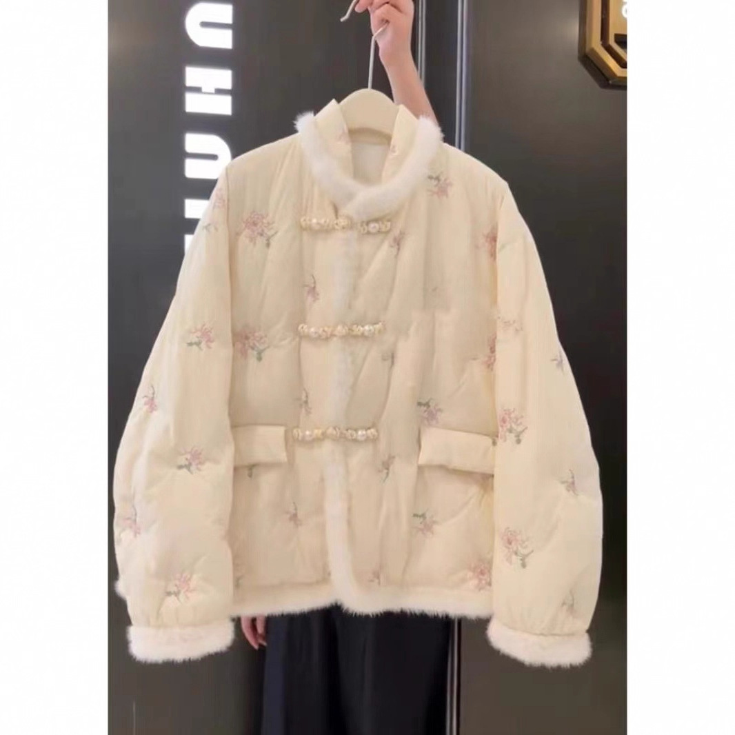 新中国式女装国風綿服高級感超美しい盤ボタン綿服コート女2024新型冬保温