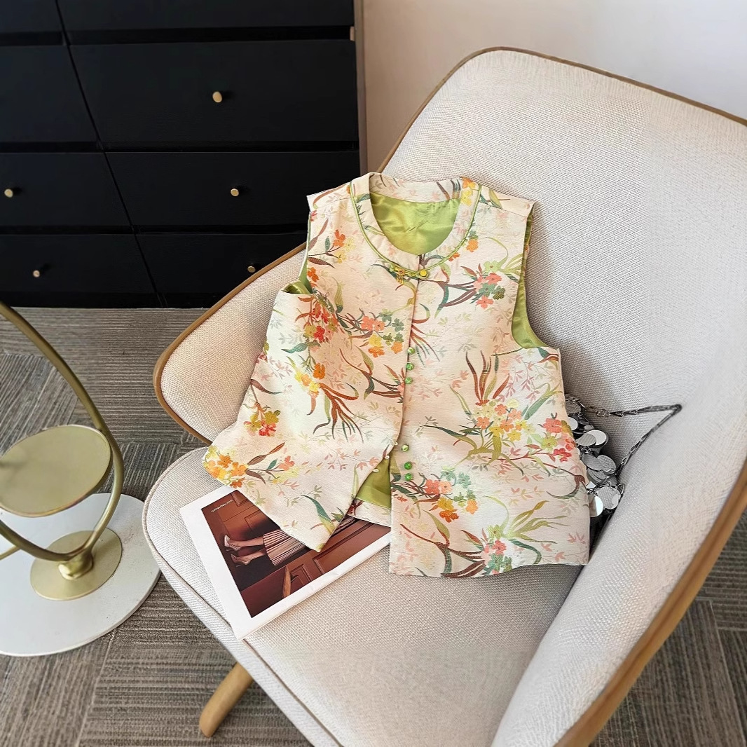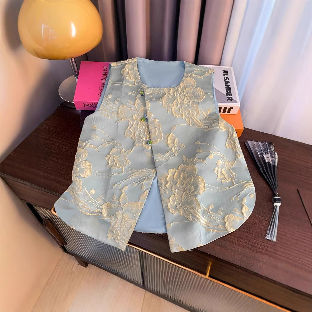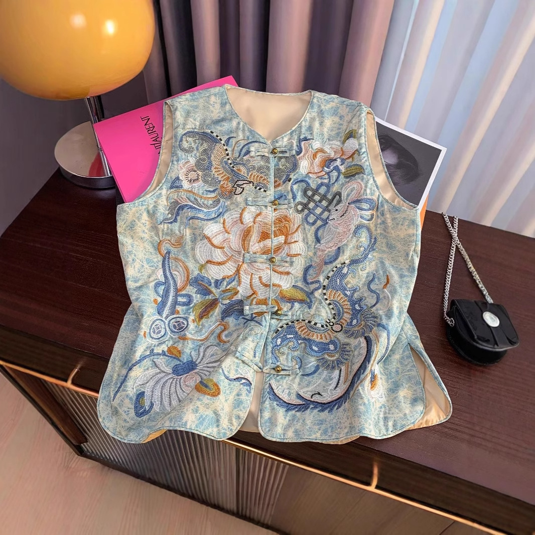 新中国式国風盤ボタン重工刺繍ベストベスト馬甲女2024秋の高級感