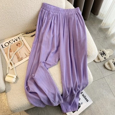 2025 新しい夏の気質ハイエンド紫花糸模造リネンバルーンパンツ女性の弾性デザインカジュアルパンツキャロットパンツ