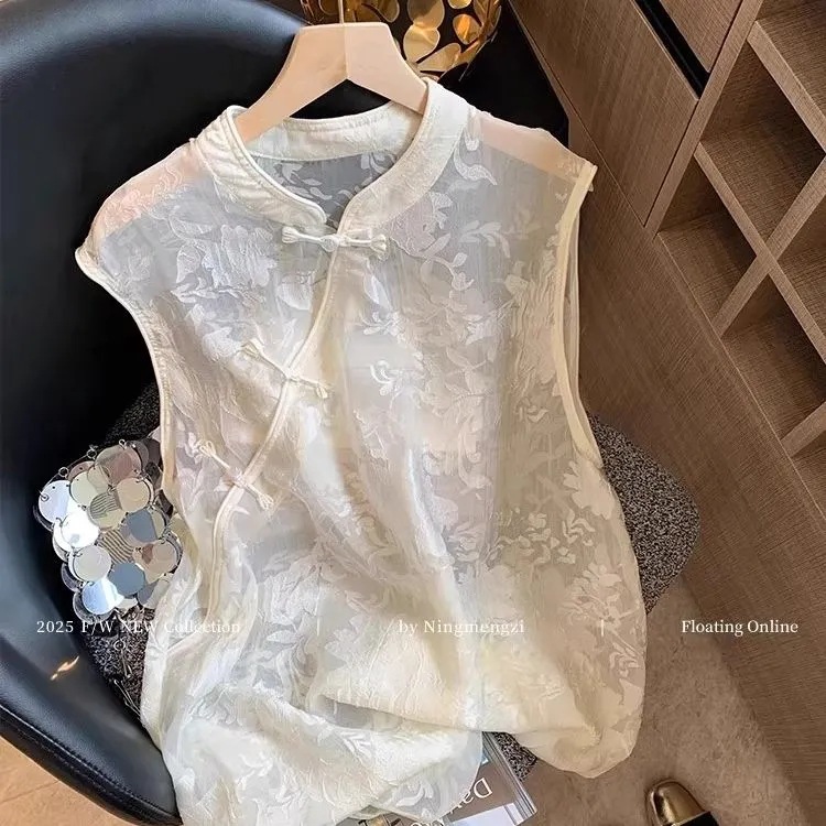 2025 新中国風ライトナショナルスタイルベスト夏薄い刺繍ベストベストレトロノースリーブジャケットトップ