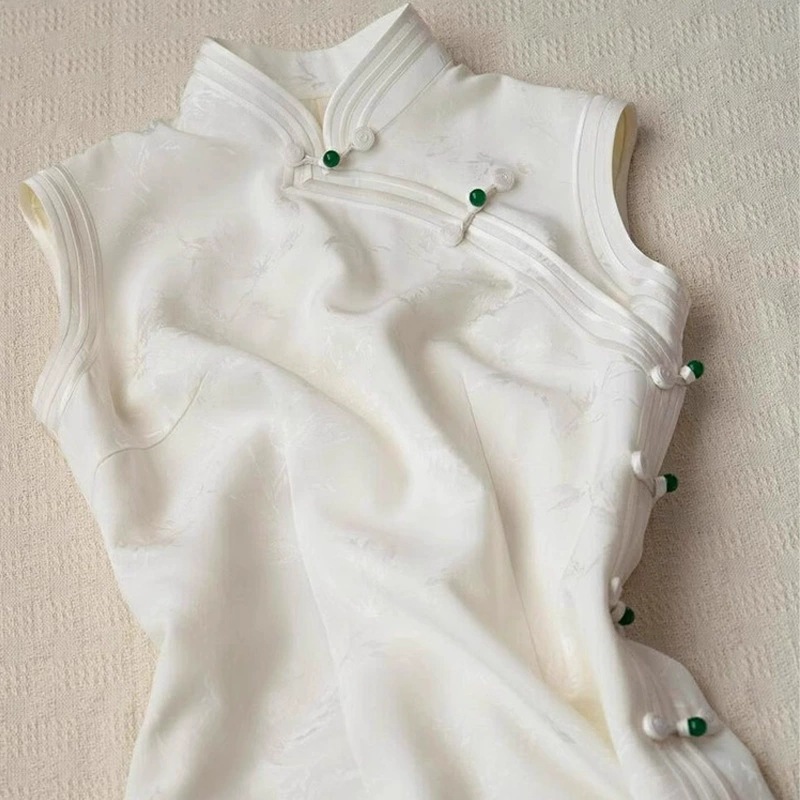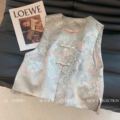 新しい中国風模造アセテートサテンジャカードベスト女性のための 2025 夏の新しいスタイルの優しいレイヤード中国風のベスト