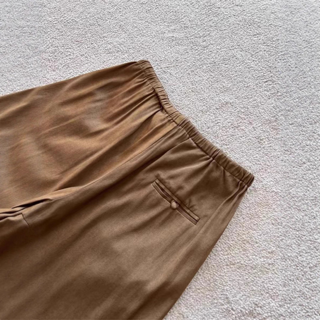 Dなしでおすすめ〜コストパフォーマンスCHAOが高い!レトロな多用途コーヒー色の弾性ハイウエスト巾着模造シルクワイドレッグパンツ女性用