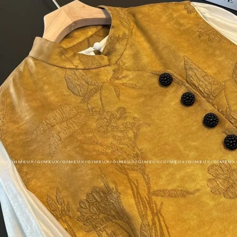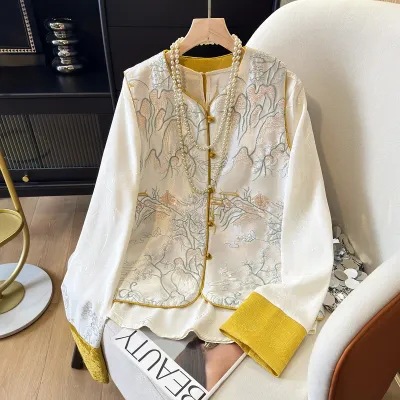 リバーシブル国民風ベスト女性の新しい中国風のジャケット刺繍ベストルーズシャツツーピースセット 2025 春と夏の新しいスタイル