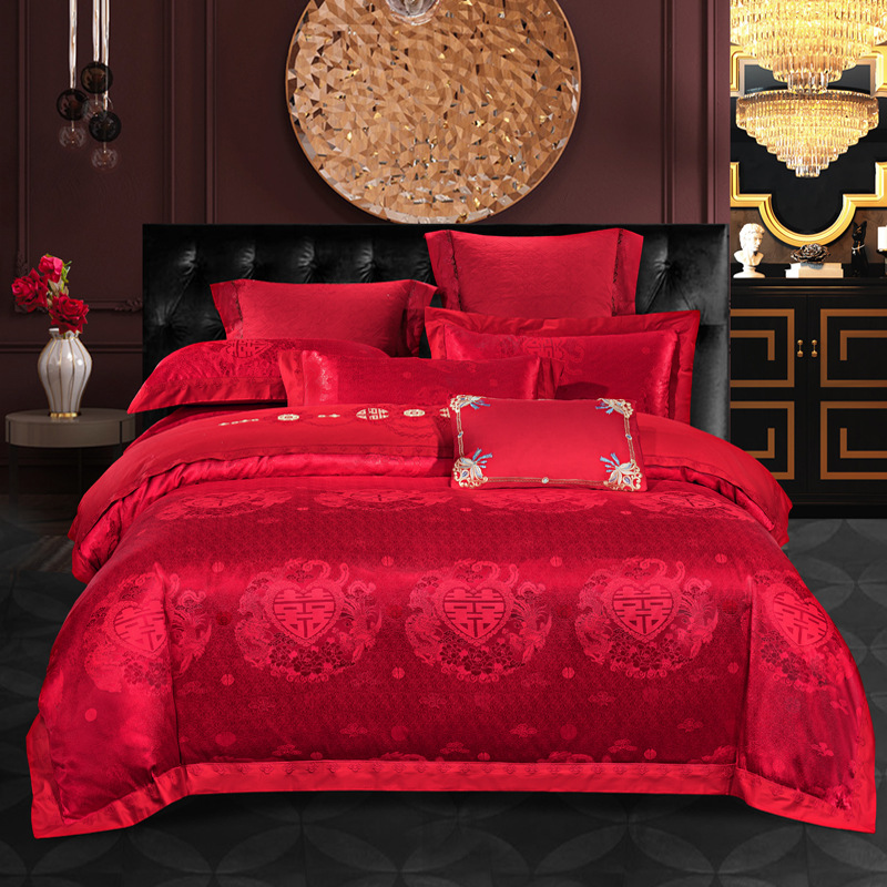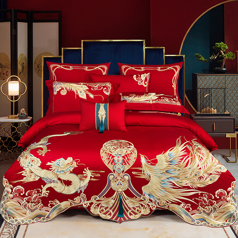 140s長絨毛綿重工刺繍四点セット結婚祝いサテン多点セット純綿おめでたい大紅二人セット
