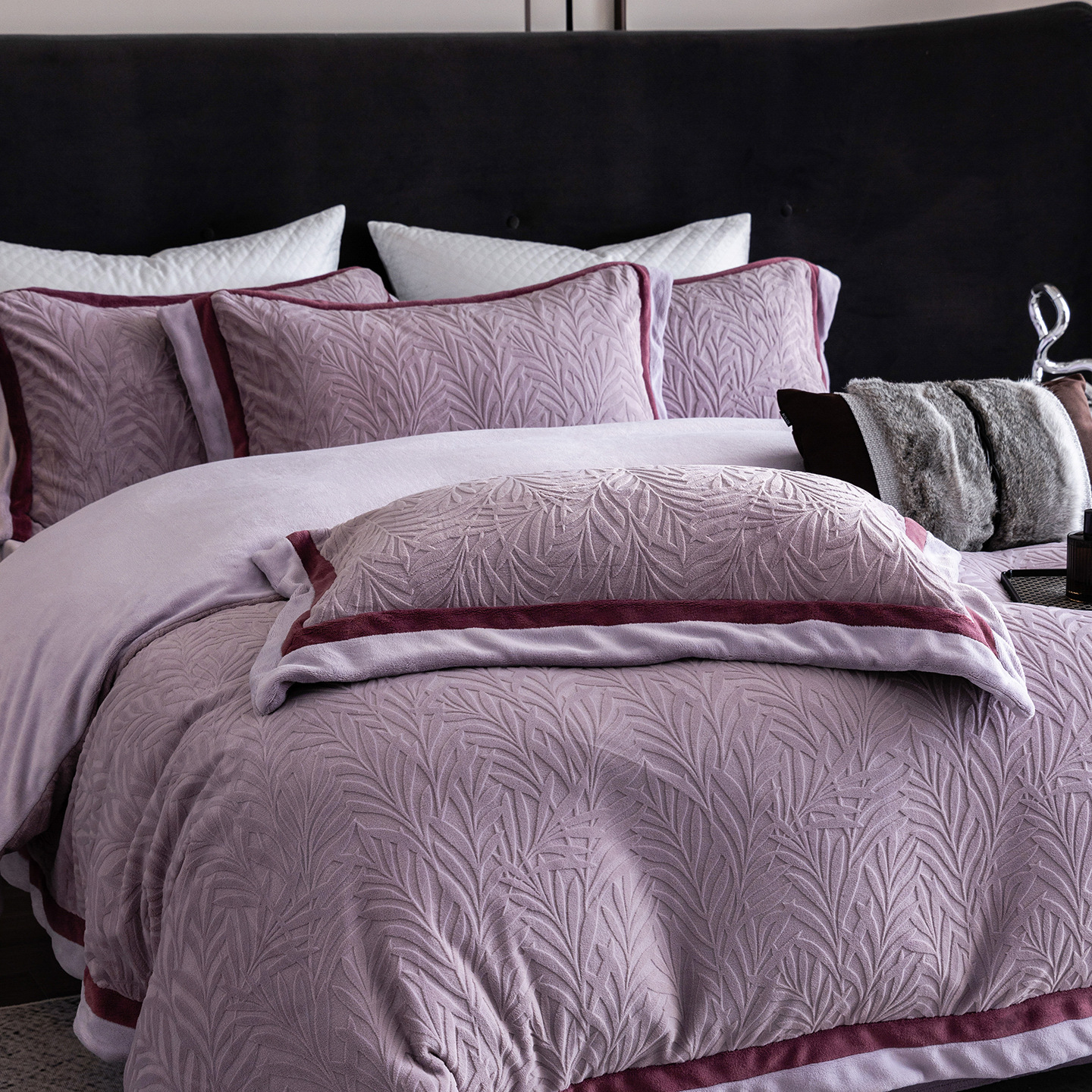 高坪量牛乳ベルベット刺繍4点セット冬の保温セット2人用牛乳ベルベット4点セット