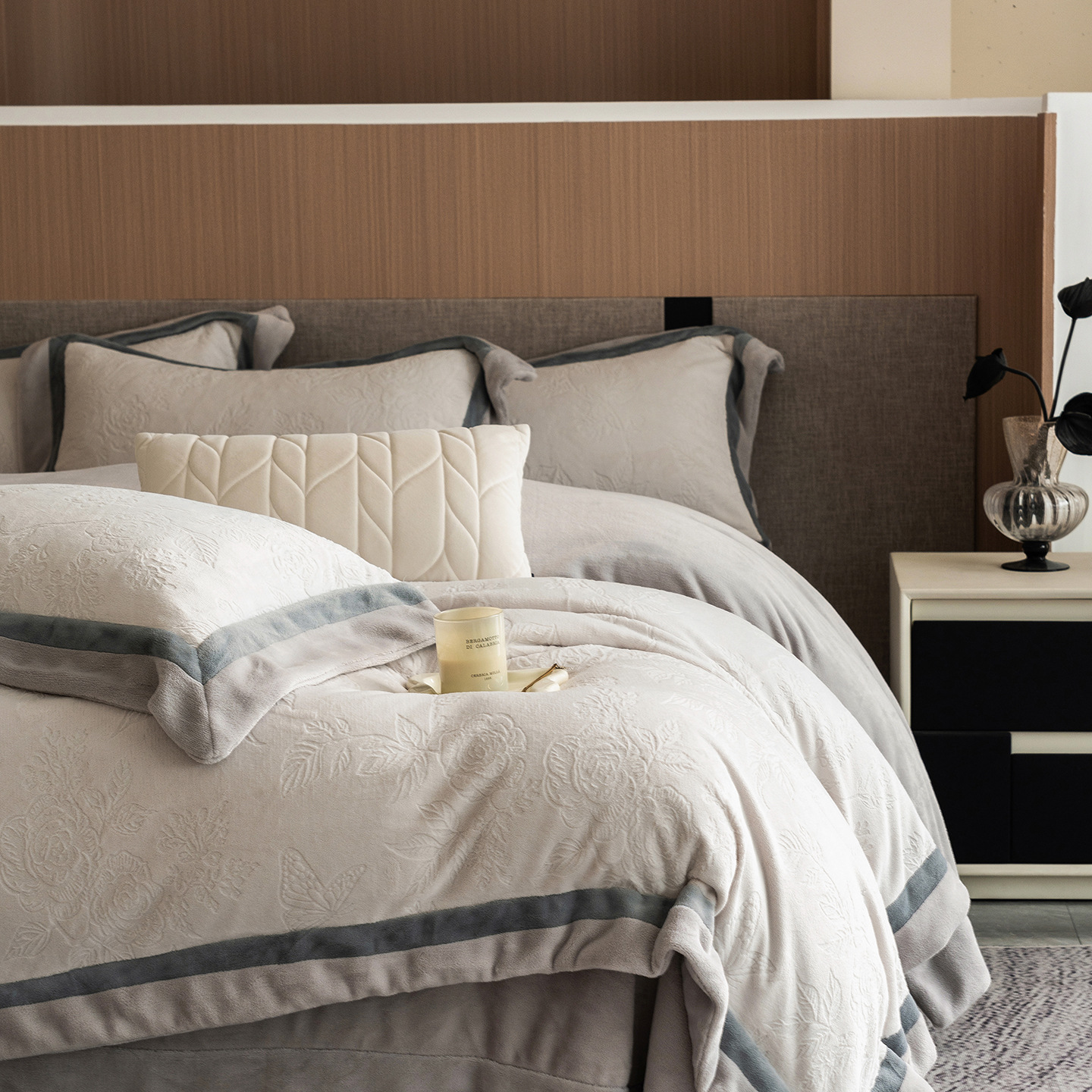 韓国版のミルクの毛の彫刻の4つのセットの王女の風の高い重さの厚い4つのセットの冬の保温の2人のセット