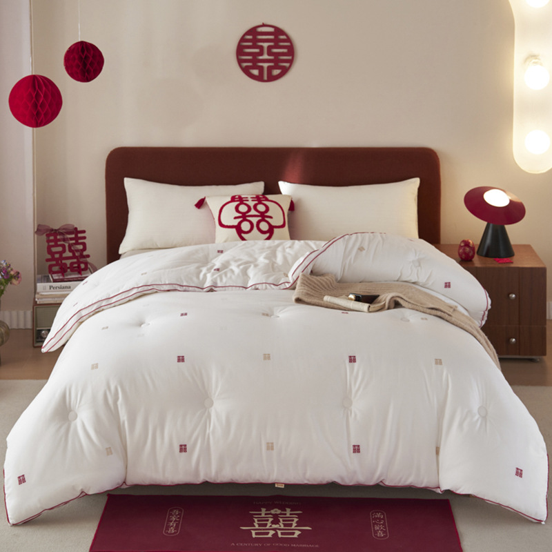 綿80本のジャカード20% イネの抗菌繊維の結婚祝いは純綿の真っ赤な春秋に冬に布団をかけられます。