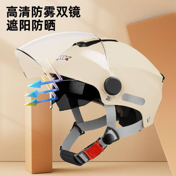 適用電気自動車ヘルメットダブルレンズ夏ヘルメット防霧ノブ調節器男女タイプ日焼け止め四季通気ヘルメット