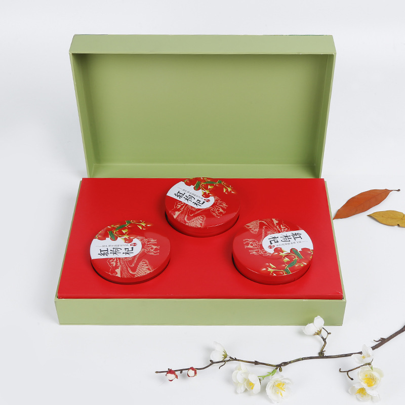 茶のギフトボックスのセットをカスタマイズして、カラーボックス化粧品のお土産ボックスを開けて、三合一のギフトボックスをカスタマイズします。
