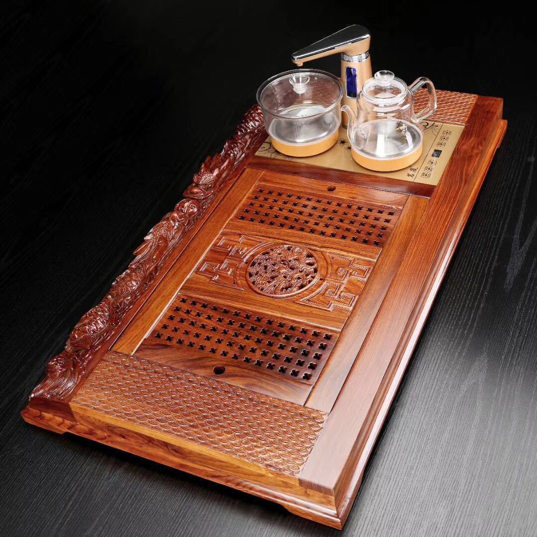 四合一花梨黒檀木茶盤全自動ガラス電磁炉工夫茶器セットセット茶海茶台