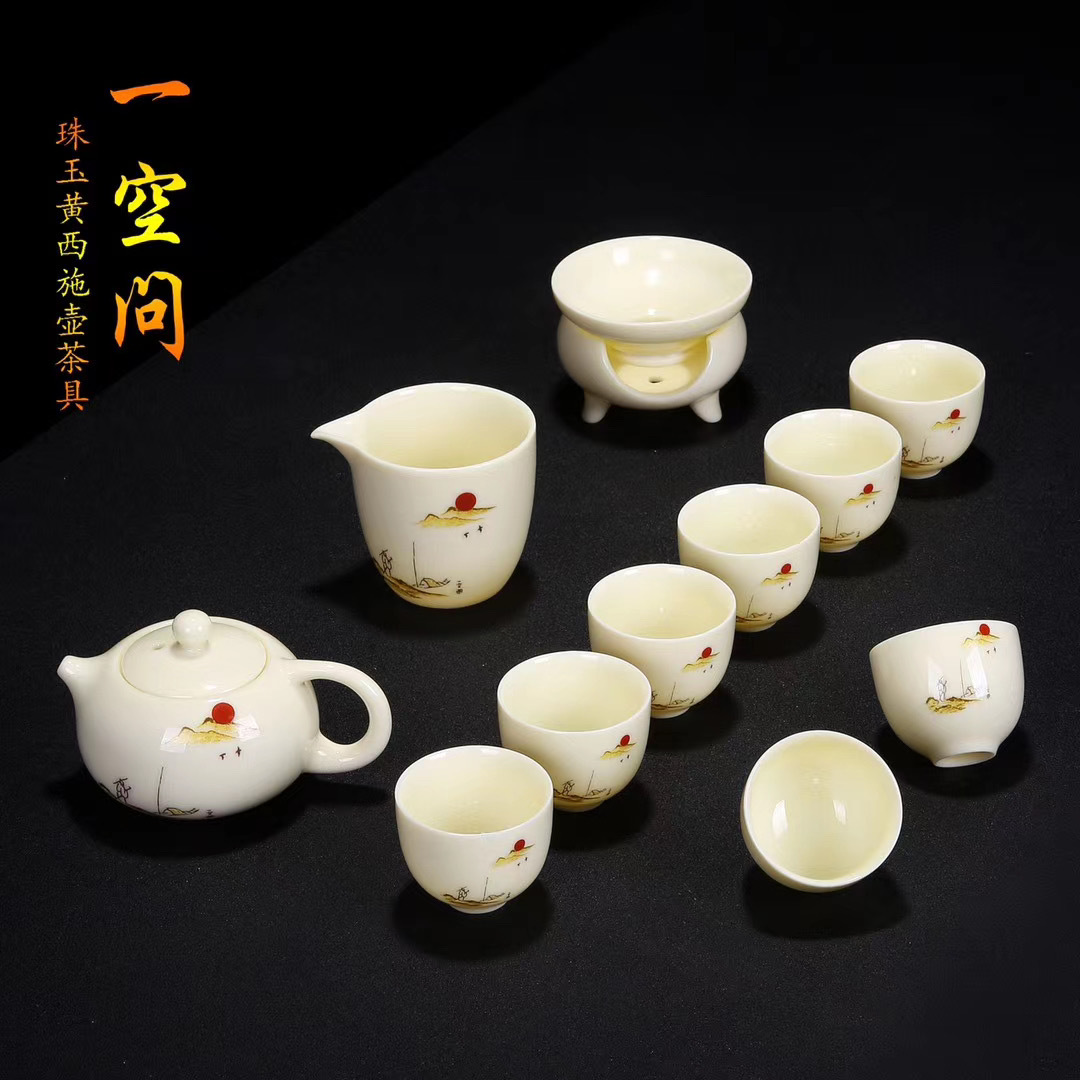 羊脂玉宝石黄セット工夫茶器セットシンプルなオフィスイベント高級ビジネスギフトロゴ