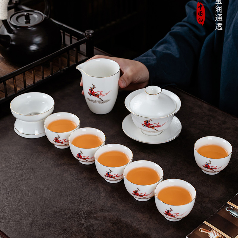新商品羊脂玉茶器セット卸売り陶磁器蓋碗工夫茶器セット茶杯茶碗可ビジネスプレゼント
