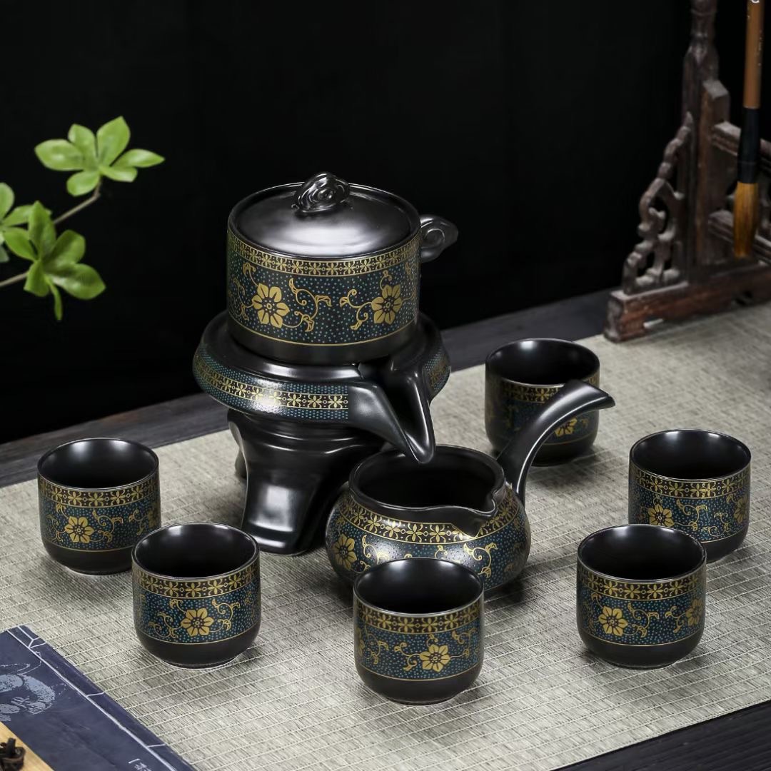 メーカー直販暗香黄龍金葉怠け者半自動時運転回転茶器セットビジネスプレゼント