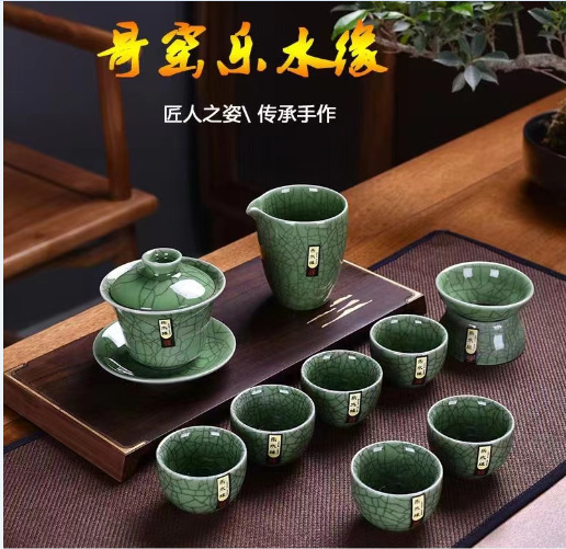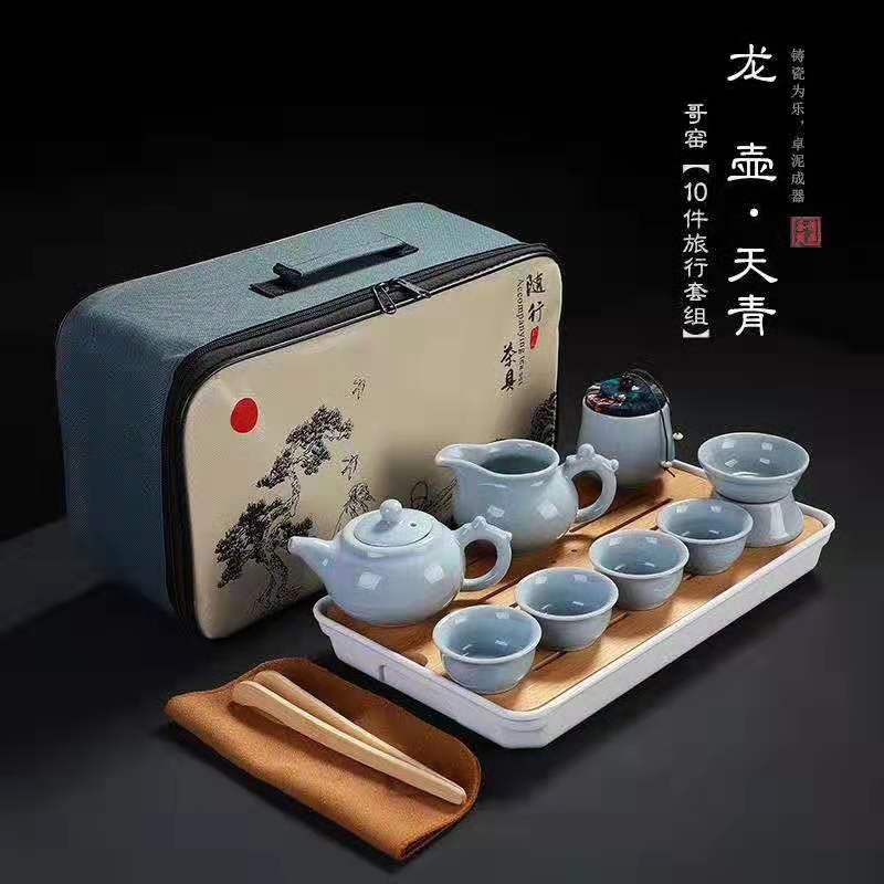 メーカー直販携帯旅行茶道具哥窯10頭セット工夫陶磁器事務ビジネスプレゼントロゴ