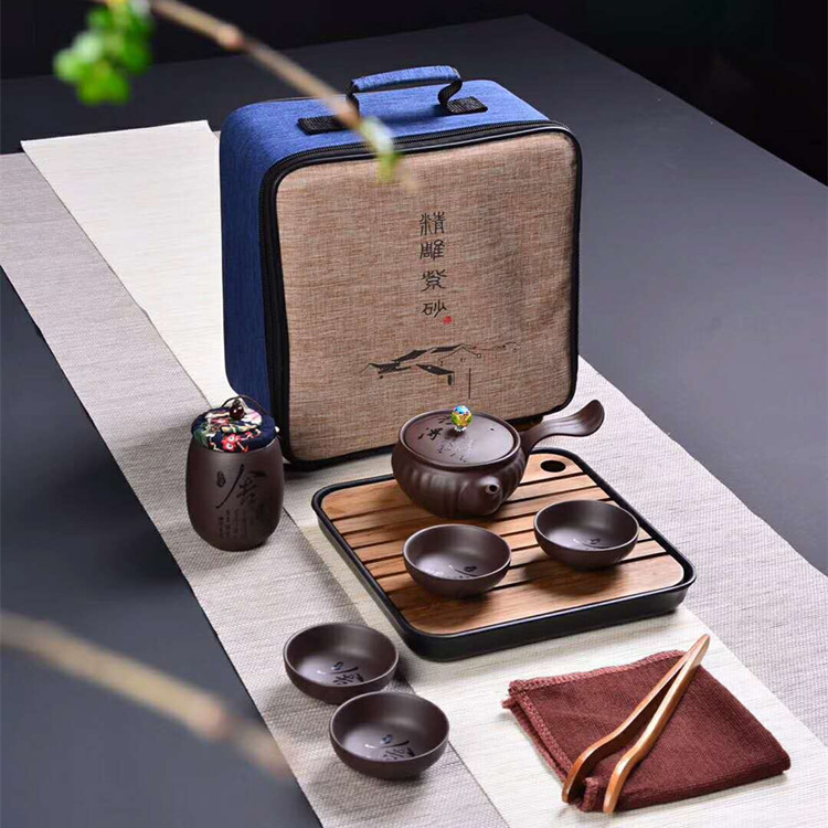 紫砂旅行茶器セット一本四杯携帯型快客杯工夫茶器ギフトロゴ