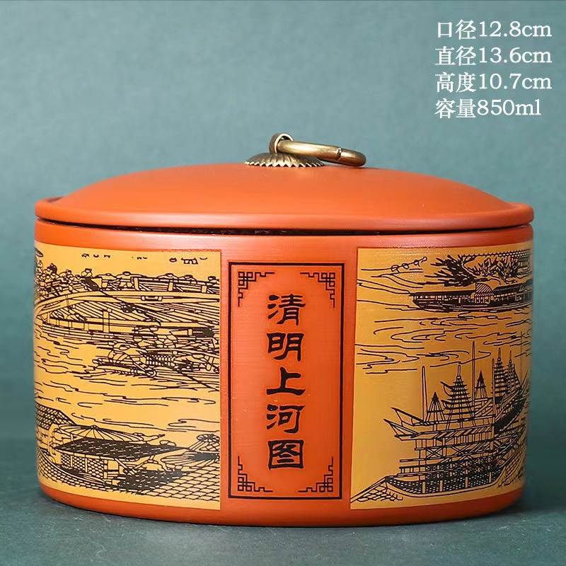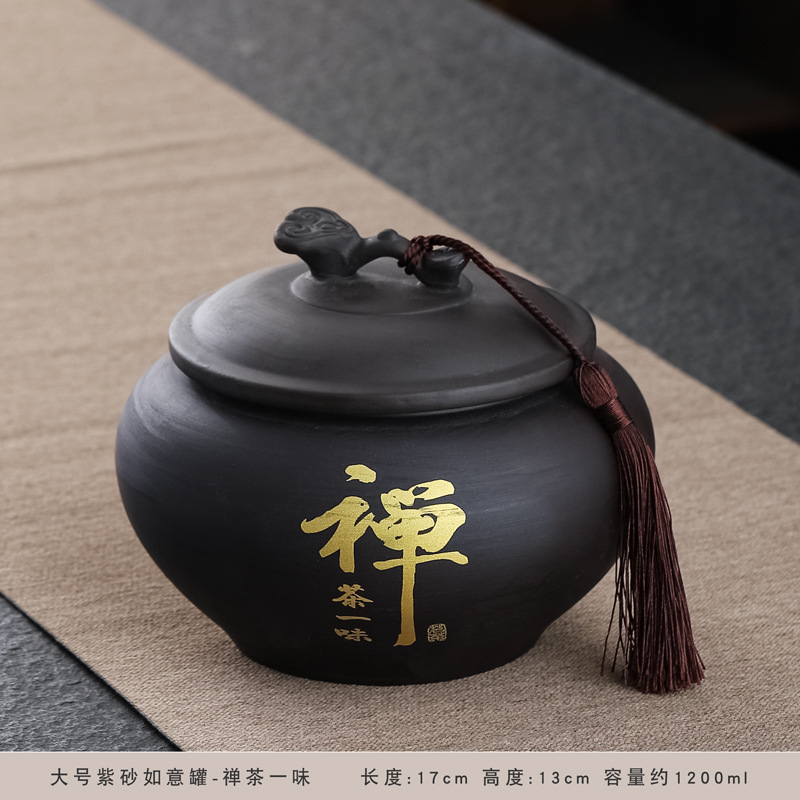 紫砂茶葉缶陶磁器密封缶プーアル茶紅茶半斤入り中号覚醒茶缶茶葉包装箱卸売り