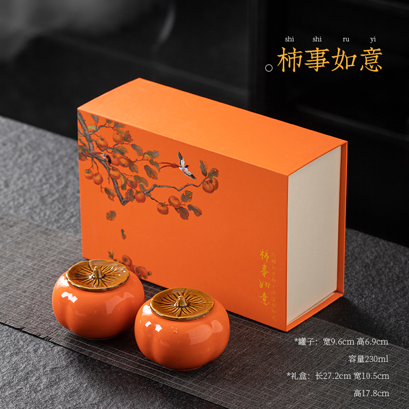 メーカー直販柿茶葉缶万事如意創意喜糖茶缶家庭用携帯密封防湿缶