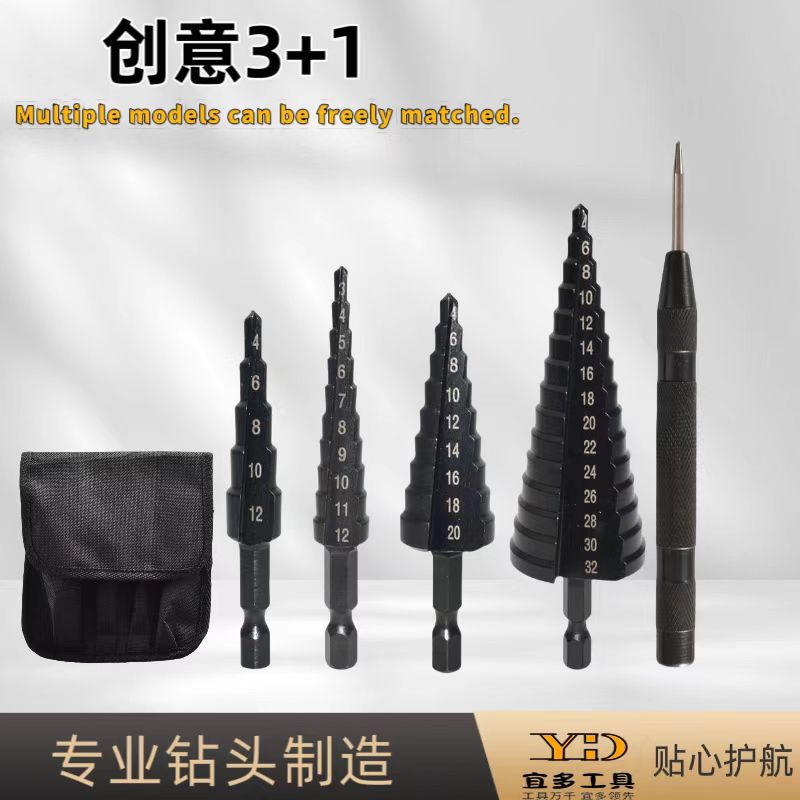 国境を越えたハードウェアツールセット、宝塔型ステップドリル、高温焼入れ穴あけ、設置位置決めドリル、木工用多目的ドリルビット