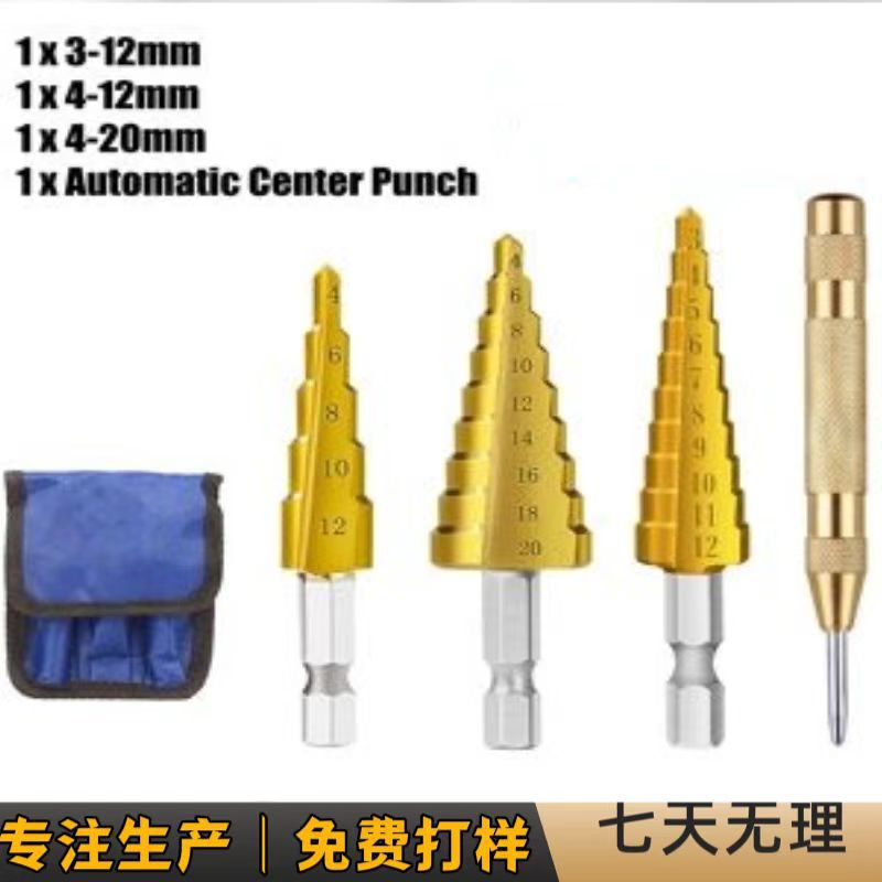 国境を越えた宝塔ドリルチタンメッキ直溝のこぎり階段ドリル木工多目的穴拡器上質宝塔セット
