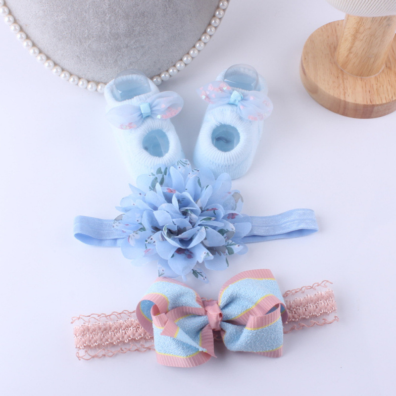国境を越えた欧米の新型赤ちゃんヘアバンド靴下セット子供ヘアアクセサリー3点セット赤ちゃん蝶結びヘアアクセサリー
