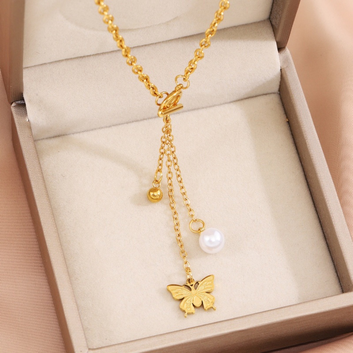 欧米の新型の金色のステンレスは真珠の蝶の装飾のようです。
