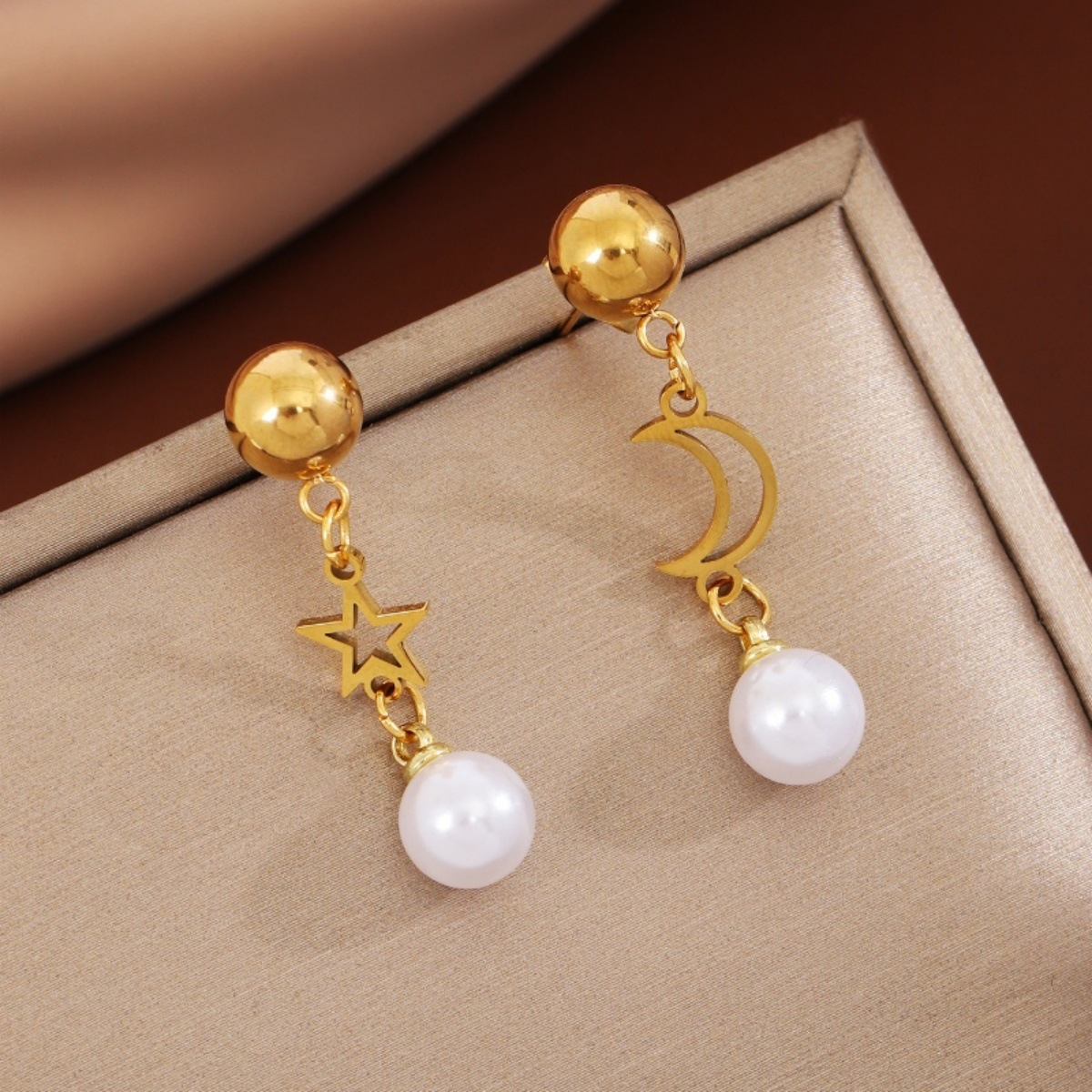 欧米の新型ステンレス星月は真珠の金色の丸い玉のイヤリングの女性のイヤリングのアクセサリーの卸売りの越境を模倣します。