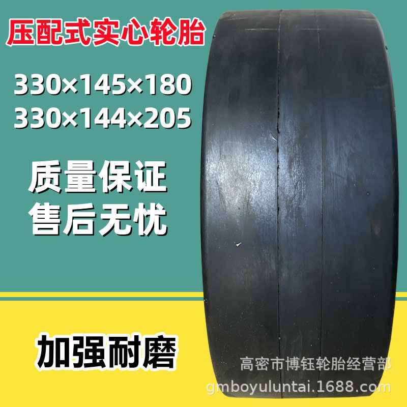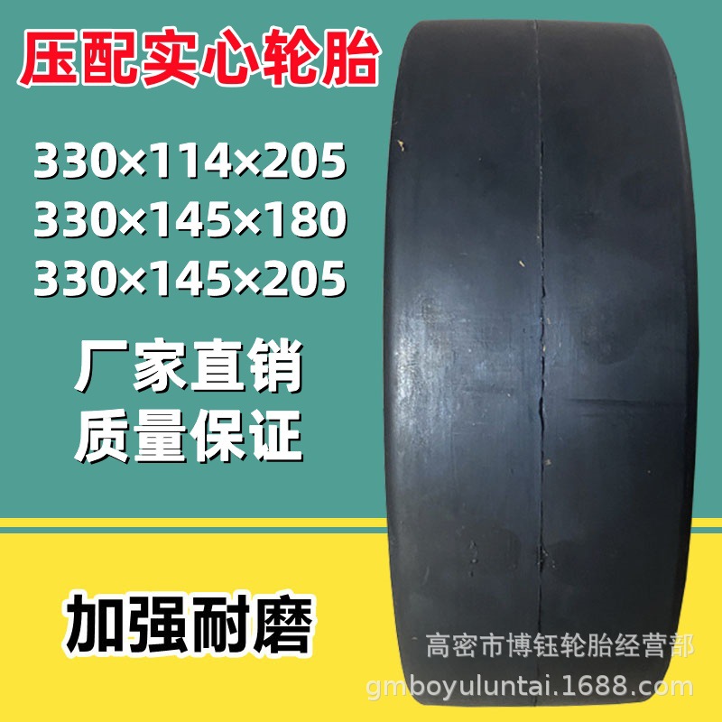メーカーは、330×114×205のスチールリム圧入式トレーラーフォークリフトソリッドタイヤを供給しており、大量の優遇措置が可能