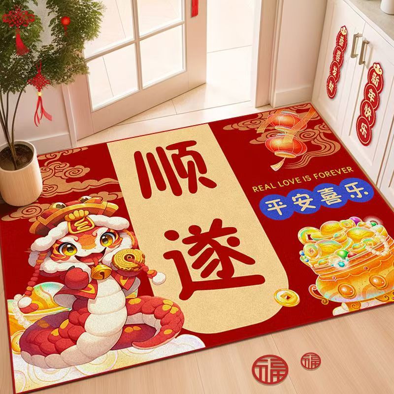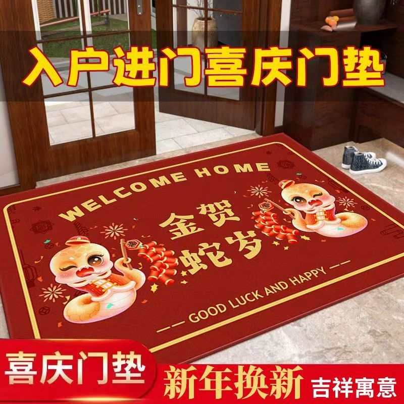 赤い入戸マット2025新年玄関マット蛇年家庭用除塵耐磨耗ドアマットカーペット