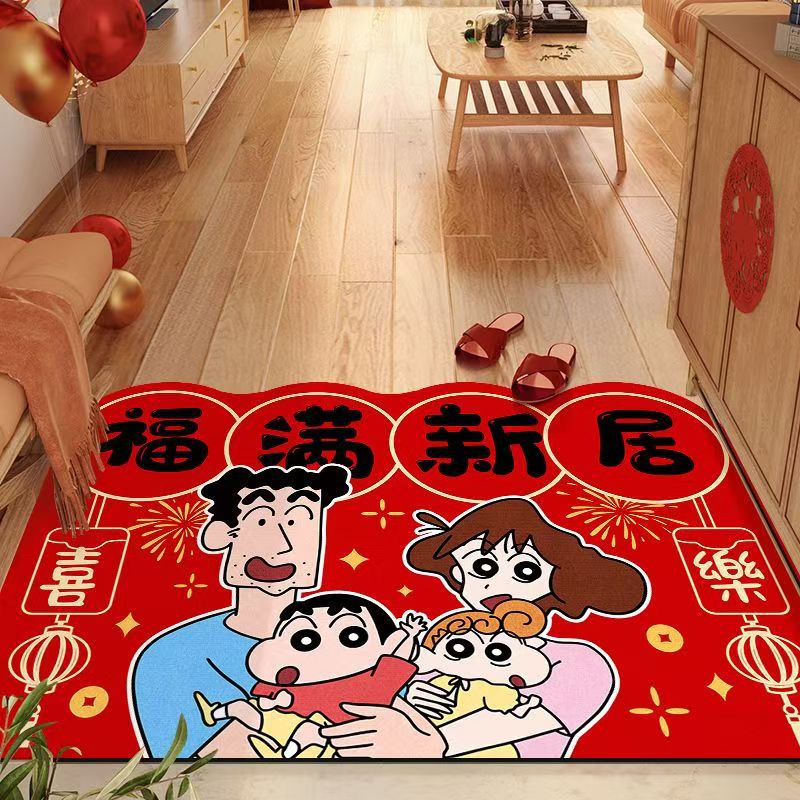 赤い家の入り口のマット新年の玄関の入り口のマット家庭用アニメの玄関のお祝いのマットカーペット