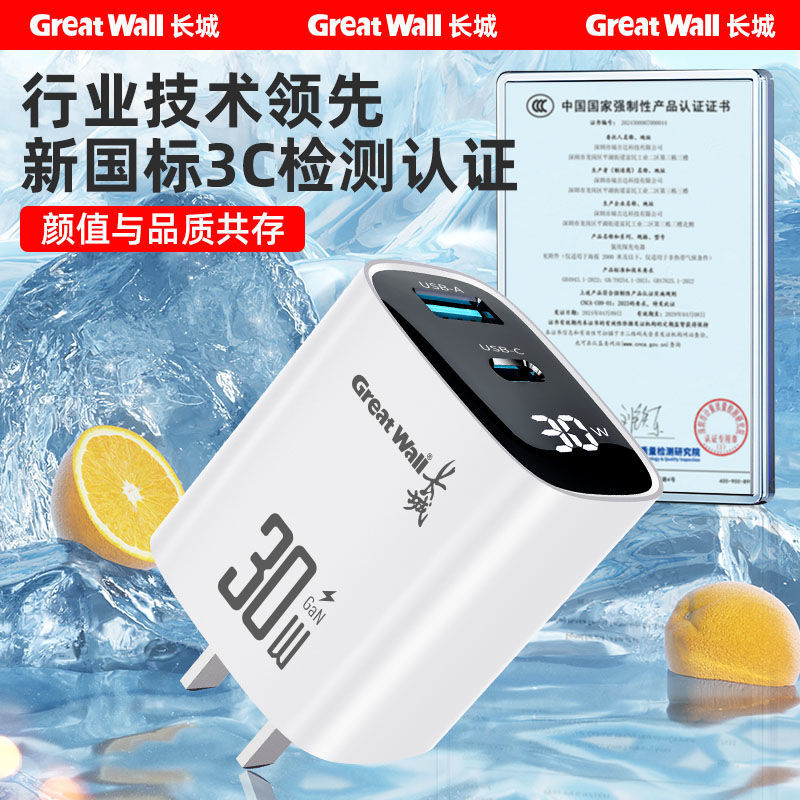 携帯電話充電ヘッド30w窒化ガリウム二口PD急速充電デジタル表示はリンゴ14米15汎用充電器を適用する