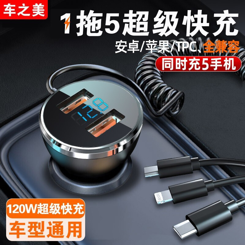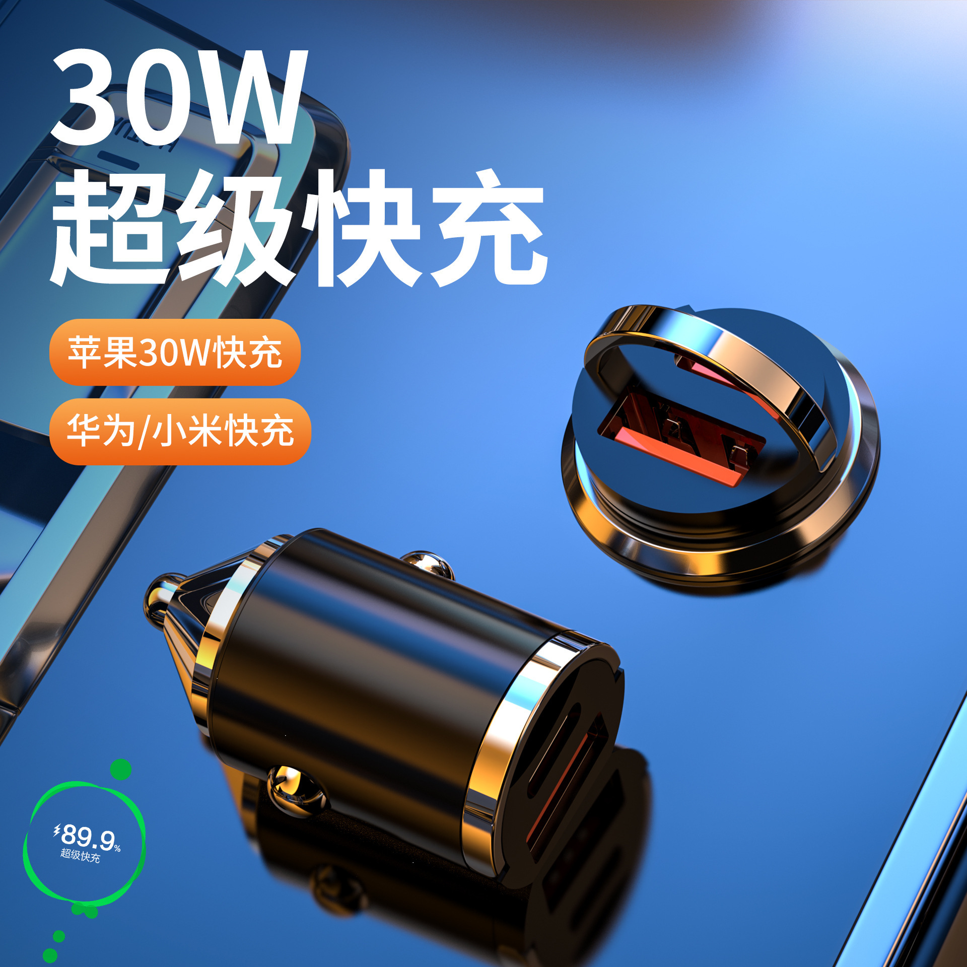 車載充電器30w急速充電金属リング双口Type-C USB急速充電ミニ車充電1モップ2