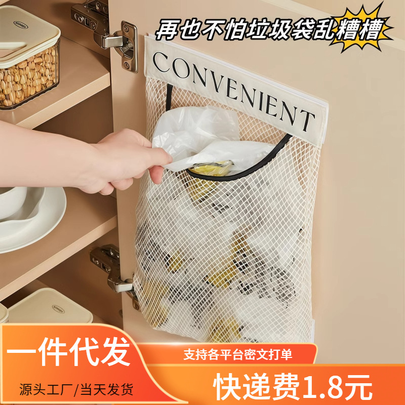 メッシュ収納袋キッチン壁掛けゴミ袋収納袋大開口雑貨吊り袋大容量収納袋
