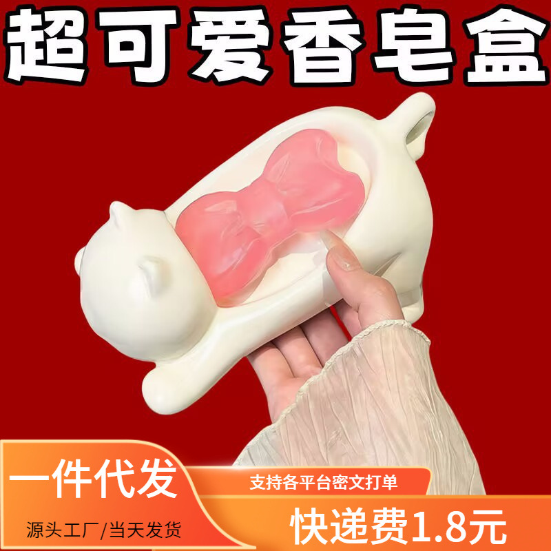 漫画猫ホームバスルームクリエイティブかわいいソープボックス洗面台収納ラックソープボックス排水洗濯石鹸