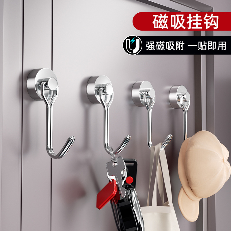冷蔵庫の側面に取り付けられた磁気フック、強力なマグネット、パンチングなし、痕跡のない磁気粘着フック、玄関ドアマグネット、小さなフック