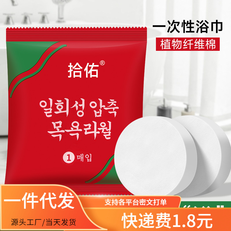 【使い捨て圧縮バスタオル5枚パック】厚手の携帯用折りたたみタオル、出張、アウトドア旅行用バスタオル