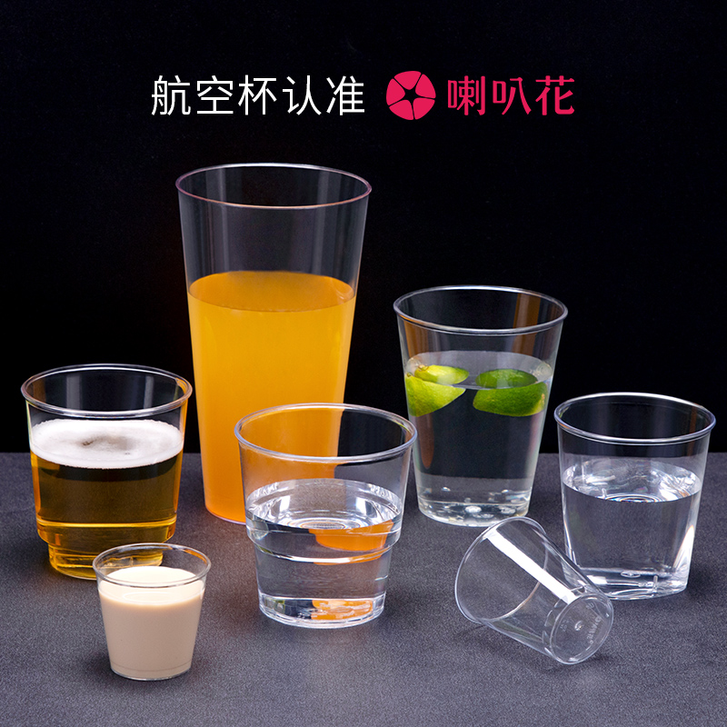 使い捨てカップハード航空カップ食品グレードハードカバープラスチックカップ増粘透明クリスタルカップビールカップティーカップ