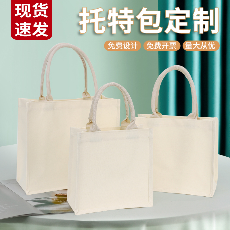 DIY ロゴ入り手描き研究ピュアベージュシンプルな空白のキャンバスハンドバッグバッグ迅速な在庫