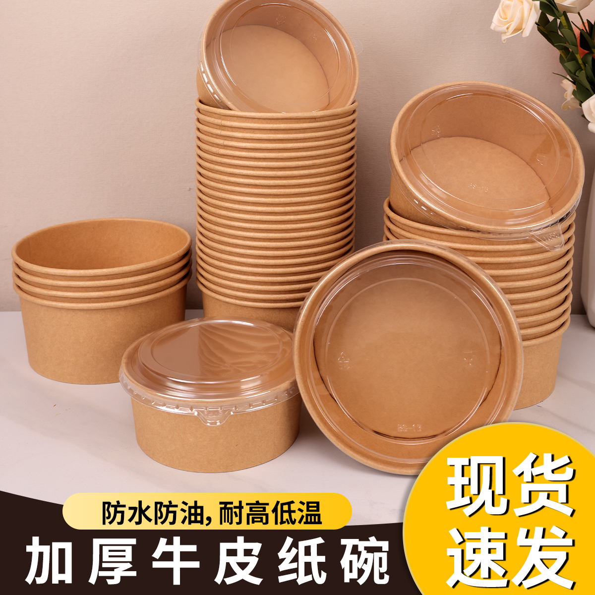 使い捨てラウンドクラフト紙ボウルラウンド増粘包装箱フルーツサラダ商業テイクアウト弁当紙弁当箱