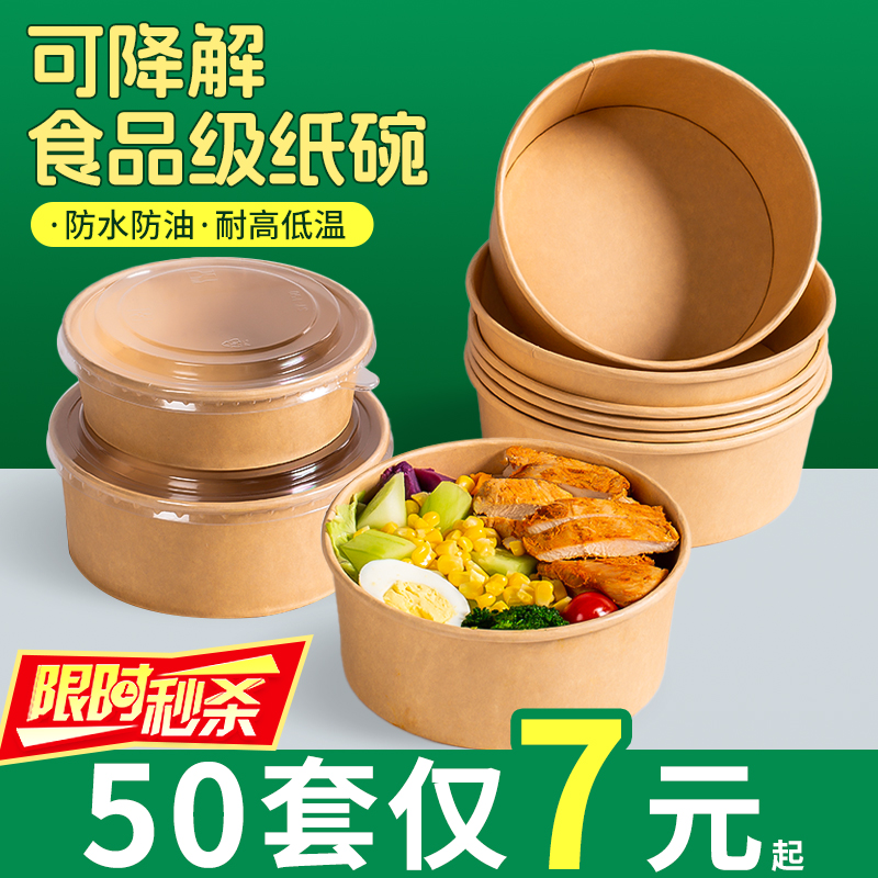 クラフト紙包装箱使い捨て紙ボウルライスボウルピクニックボックスサラダボウル紙弁当箱テイクアウトファーストフードボックスフルーツボックス