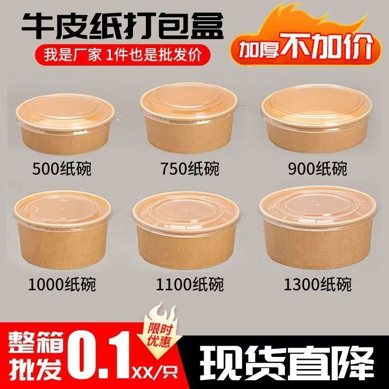 使い捨てクラフト紙外ボウル販売弁当箱お粥バケツ紙ボウルppカバー焼き梨チャーハン焼きそばクラフト包装箱