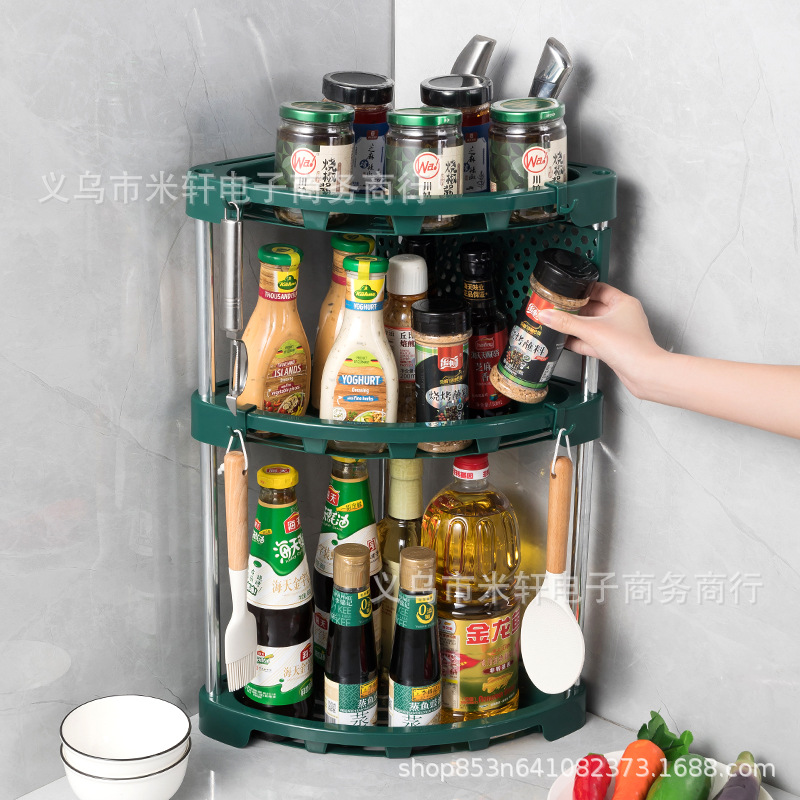 台所の棚のテーブルの調味料の刃物の箸の収納棚はプラスチックの多機能の多層の三角の調味料の棚を厚くします。