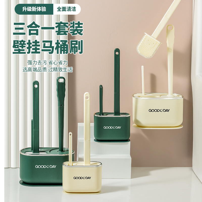 新型の軽豪華トイレブラシ壁掛け穴なし三合一全方位死角なしトイレブラシ隙間ブラシセット