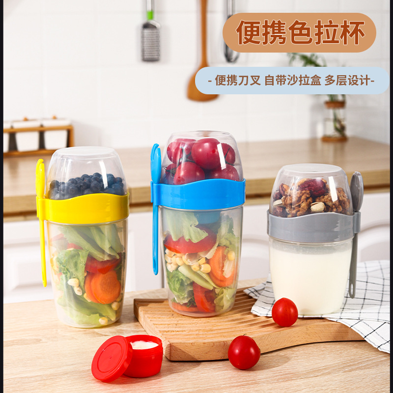 携帯サラダカップ大容量スプーン付き蓋フォーク付き朝食カップ二重果物箱密封防漏食品カップ
