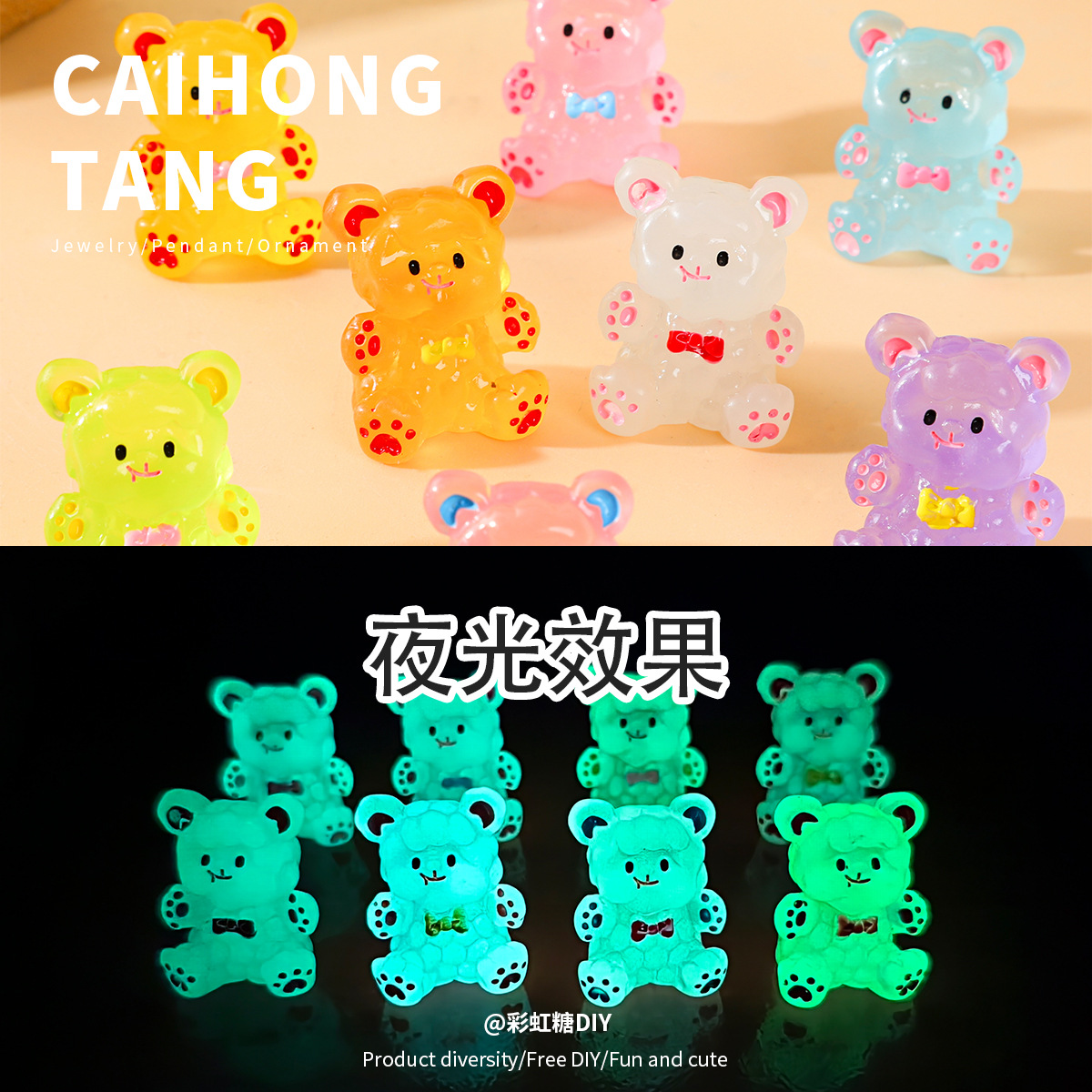 樹脂創意夜光泡芙熊公仔部品パソコンデスクトップ置物アニメDIYアクセサリー材料卸売り