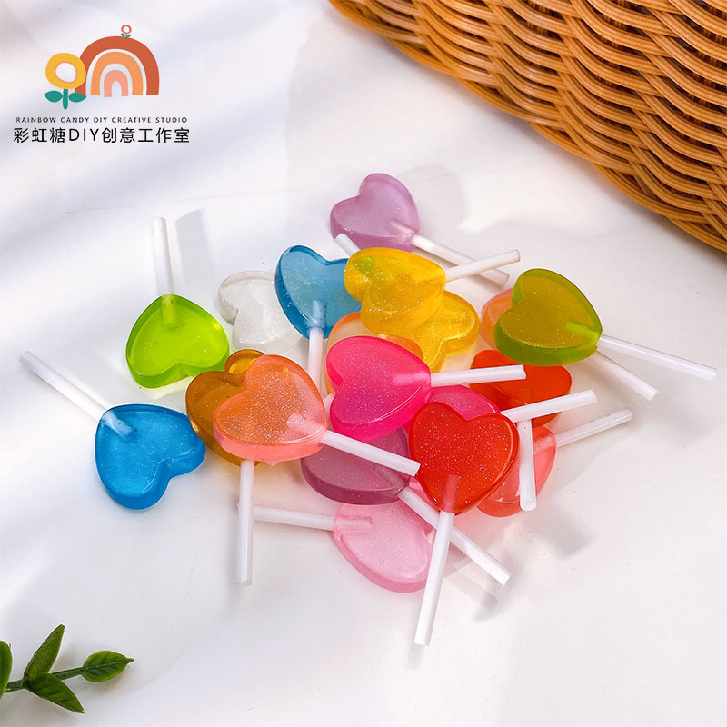 擬似樹脂の透き通った色の細いきらきらした愛のロリポップDIY創意耳飾りのヘアピンのキーホルダーのアクセサリーの部品の材料
