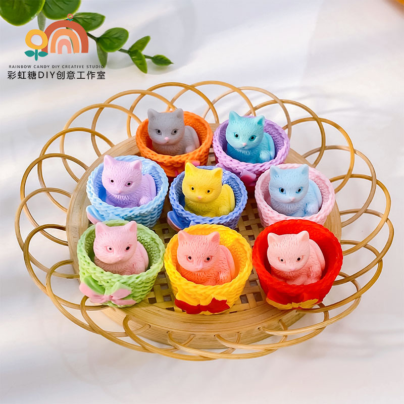 立体シミュレーション小動物かわいい花籠子猫卸売りDIYアクセサリーアクセサリー自作デスクトップ小物