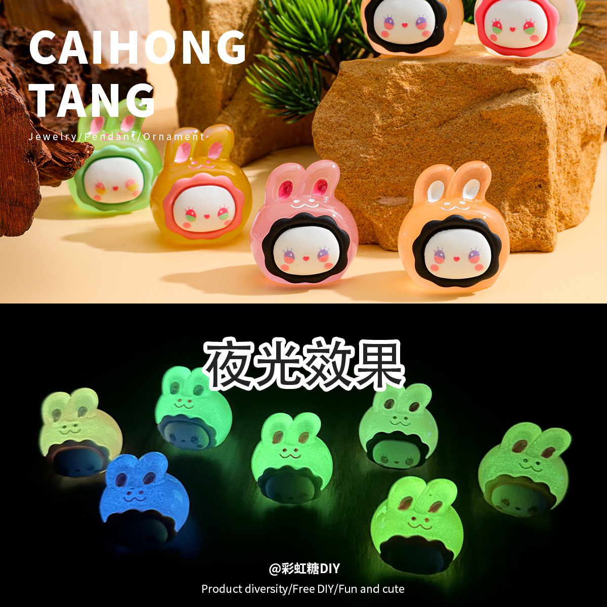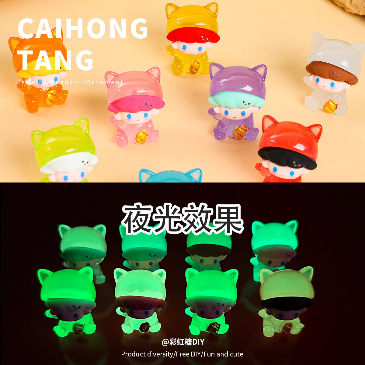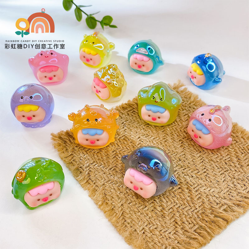 樹脂夜光泡マットdm納福立体公仔車載ストラップデスクトップ小置物DIY部品卸売り