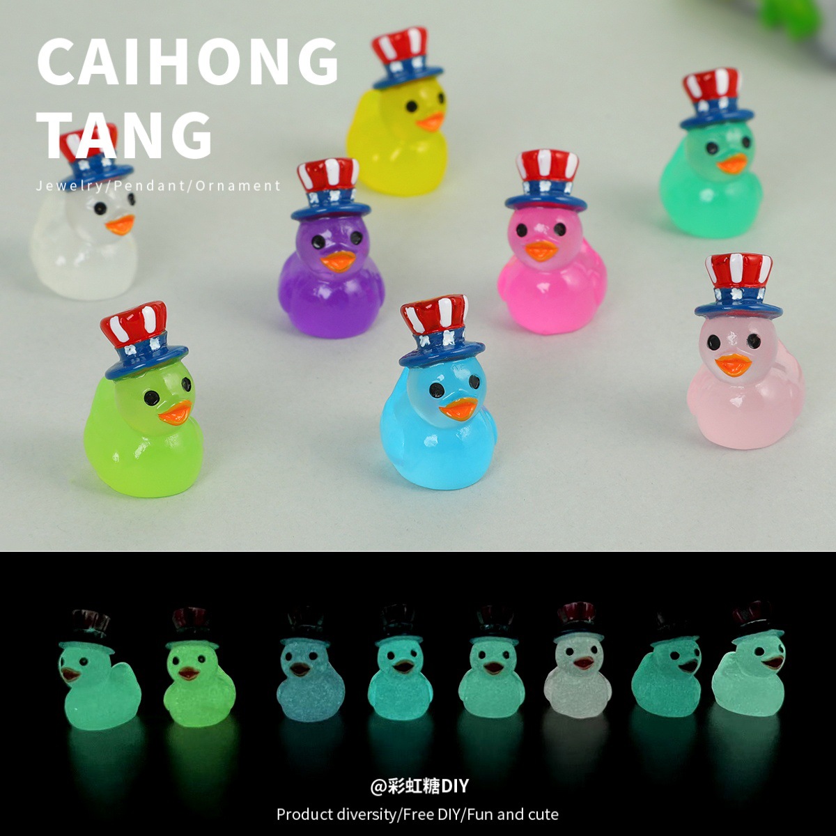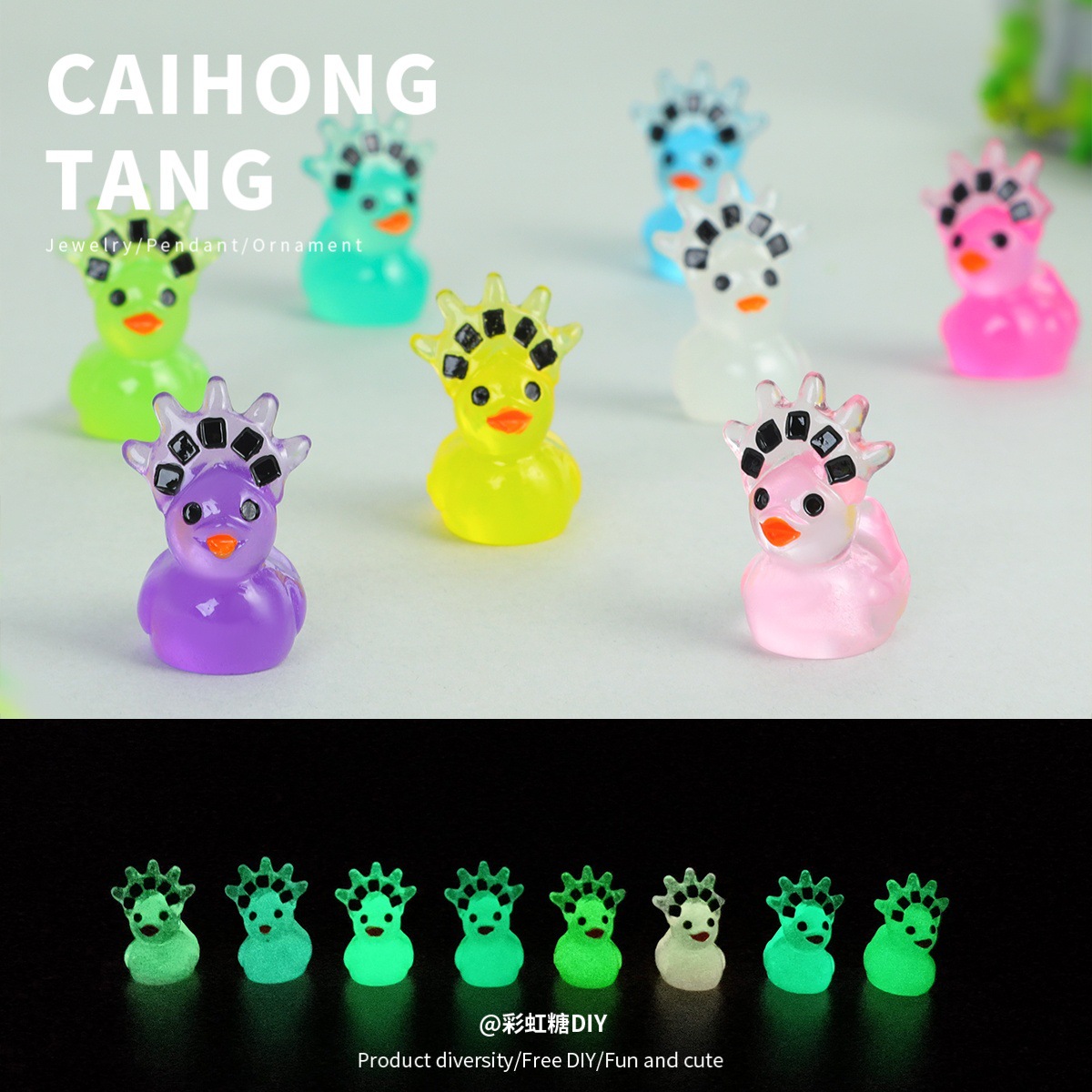 樹脂漫画三次元魔法発光アヒル diy クリエイティブデスクトップ車の装飾品キーホルダーペンダントアクセサリー