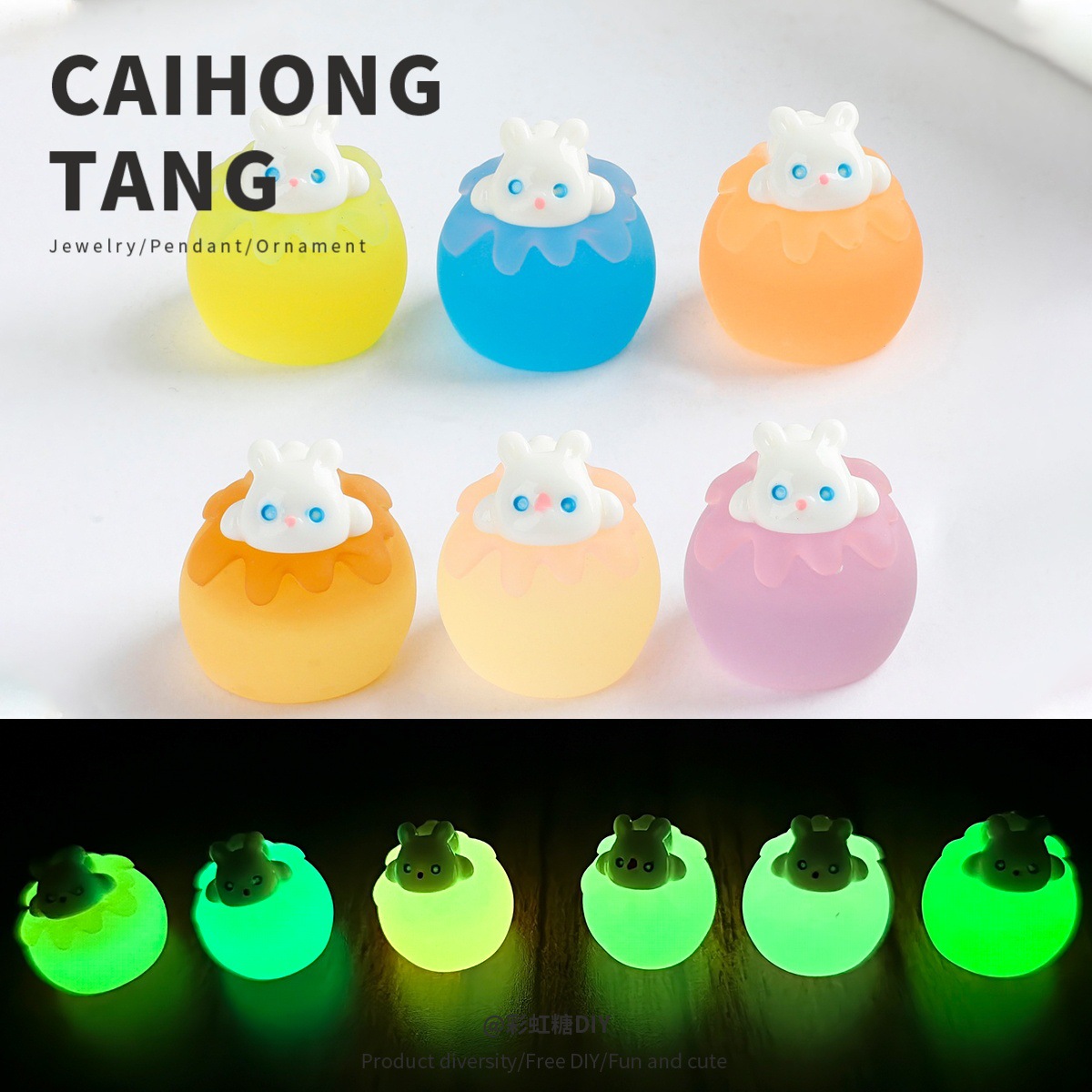アニメ立体かわいい夜光ビーズがうつぶせになっているウサギの手作りクリームテープ携帯電話アクセサリー材料卸売りDIY部品