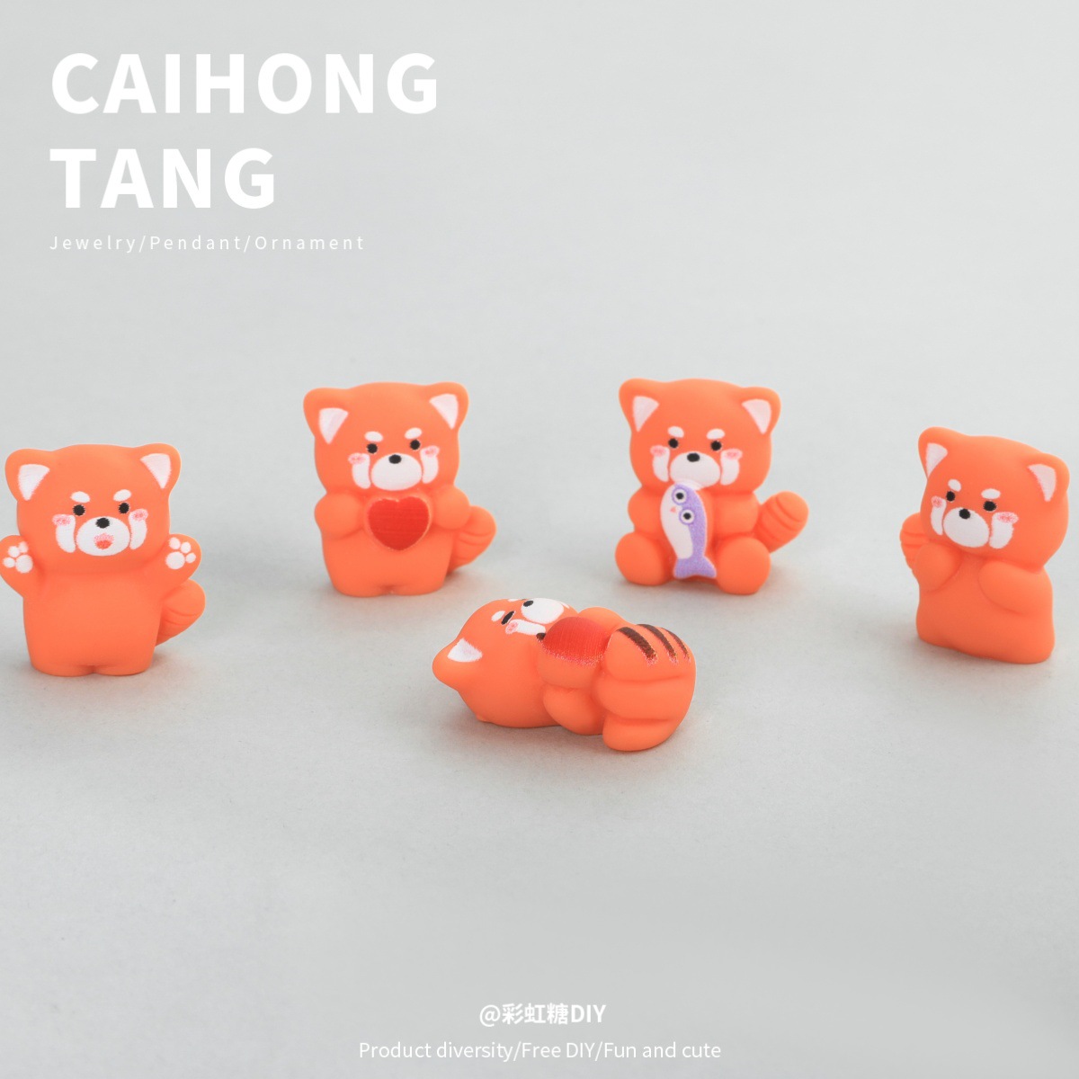 樹脂立体 DIY アクセサリー無地レッサーパンダ漫画立体手作りキーホルダーカプセルマシンアクセサリー卸売